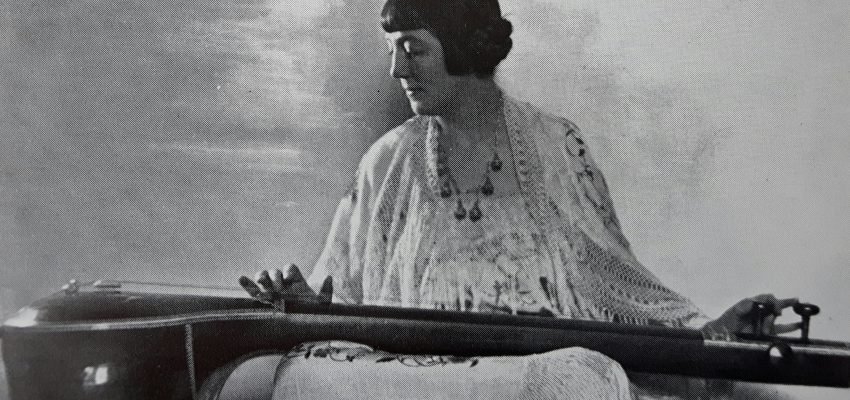 Khourshed de Ravalieu, de latere Raden Ayou Jodjana, tijdens de Londense periode, spelend op de tampura