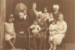 Maheboob met Mahmood op schoot, Noorunissa, Hidayat, Ali, Shadbiy met Raheema op schoot