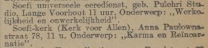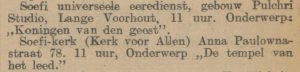 Op zondag 3 juli 1932 wordt de geboortedag (5 juli, Viladatdag genoemd) gevierd in het centrum aan de Anna Paulownastraat 78. Het Vaderland bericht hierover en over een activiteit van dat andere centrum dat samenkomt in Pulchri Studio aan het Lange Voorhout 15.