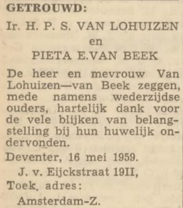 Op 16 mei trouwen Subhan van Lohuizen en Zahuran (Pieta) van Beek tijdens een dienst in de Doopsgezinde Kerk in Deventer. Het huwelijk wordt ingezegend door Murshid Musharaff Khan; Karimbakhsh Witteveen houdt een toespraak. Shahzadi moet verstek laten gaan omdat ze dit voorjaar geopereerd is vanwege struma en verder moet herstellen. De huwelijksreis van het kersverse echtpaar gaat naar Villandry in Frankrijk, een dorpje ten westen van Tours.[4]