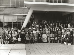 Traditionele groepsfoto van de bezoekers van de Zomerschool.