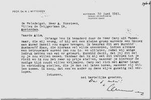 De van Tuyll-groep wil op initiatief van Ameen Carp een bezoek brengen aan de plek in de duinen in Katwijk die ‘Murad Hassil’ genoemd wordt. Mogelijk gaat het om het houden van een plechtigheid op de geboortedag van Hazrat Inayat Khan op 5 juli. Blijkbaar is het onderlinge vertrouwen nog niet van dien aard dat de groep onbegeleid mag komen gezien de onderstaande brief aan Alim Vosteen.