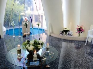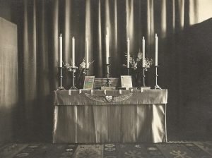 Het altaar van voor de Universele Eredienst in de Lecture Hall